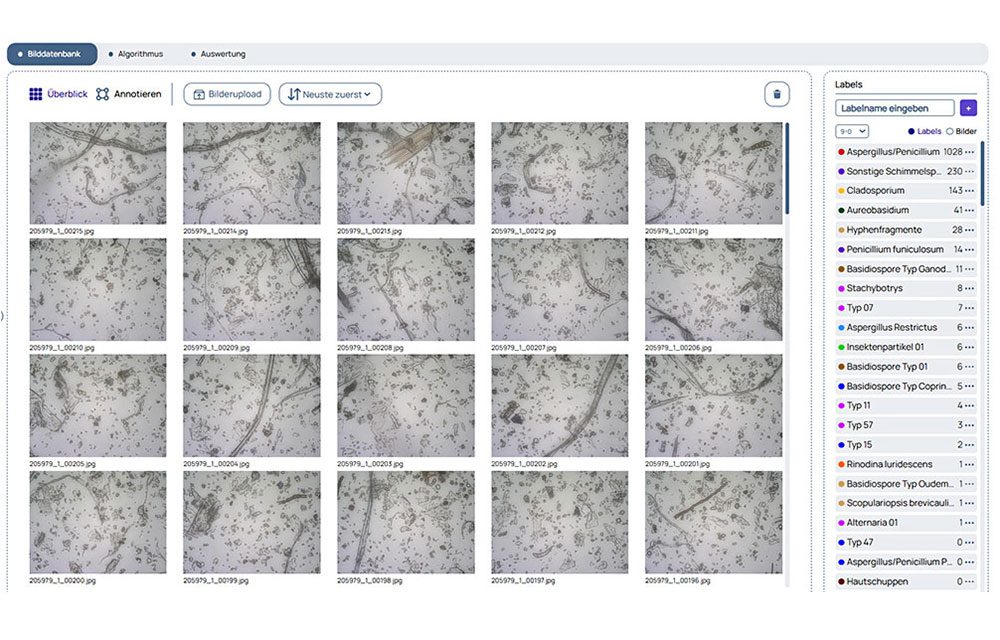 Unsere zentrale Bilddatenbank mit vollständig digitalisierten Proben, annotierten Partikeln und klarer mikrobiologischer Klassifikation dient als Basis für Prüfung, Training und kontinuierliche Verbesserung.
